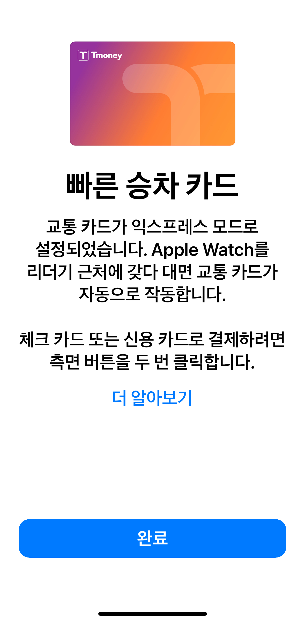 최근 업데이트를 통해 애플페이로 티머니(선불교통카드) 결제가 가능해졌습니다.