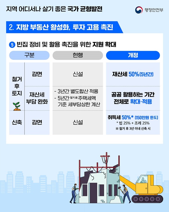 - 빈집 철거 후 토지 재산세 50% 감면